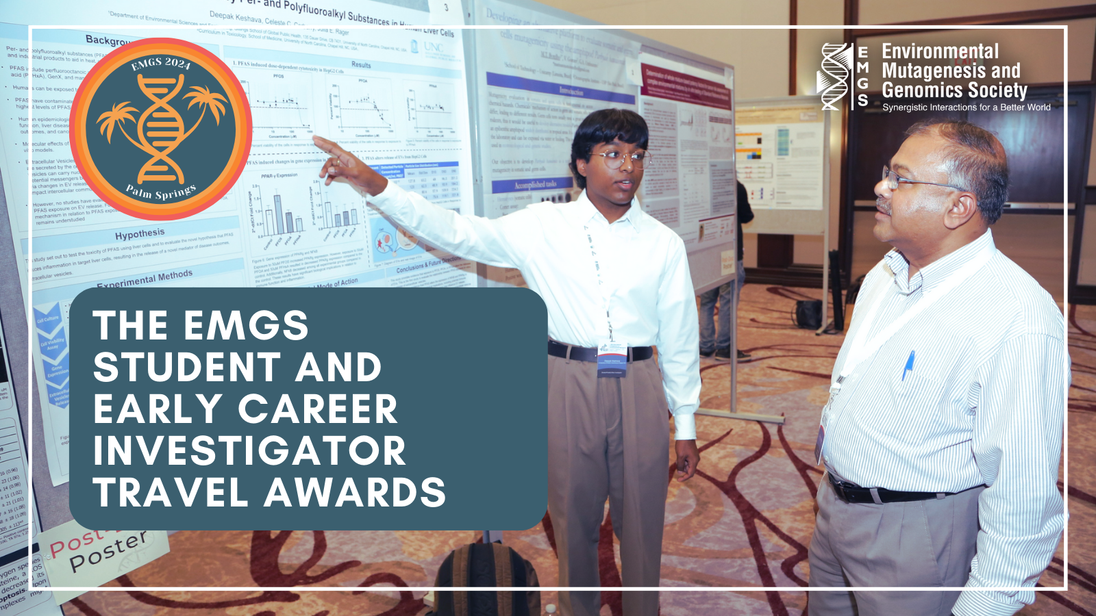 An EMGS priority is to foster the career development of students and early career investigators, helping them establish the long-term collaborative relationships that will make EMGS their professional home. In 2024, the EMGS is proud to offer numerous Student and New Investigator Travel Awards to assist students and new investigators in attending and participating in the 55th EMGS Annual Meeting, scheduled for Sept. 7-11, 2024, in Palm Springs, California.